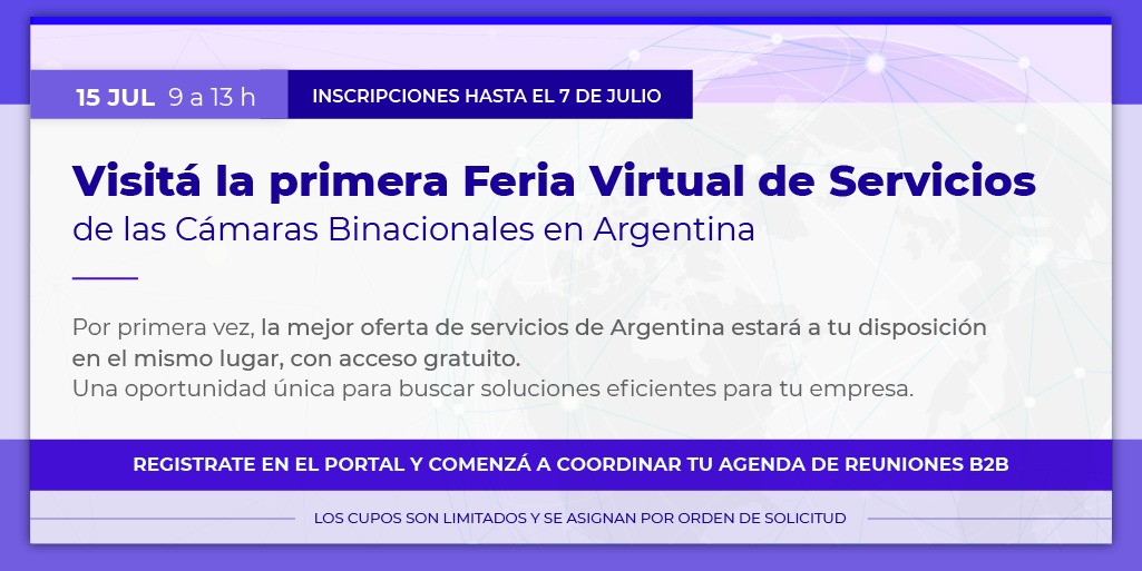 Si busca soluciones eficientes para su empresa, en la Feria de Servicios encontrará propuestas innovadoras, opciones de ahorro económico, alternativas para mejora en la calidad, a través de la oferta de más de 100 firmas con reconocida trayectoria y prestigio, asociadas a las 22 Cámaras de Comercio Binacionales organizadoras del evento.