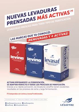 Lesaffre, la empresa que hace 165 años está al servicio de la industria de la panificación, desarrolló las nuevas levaduras prensadas frescas Levina y Levasaf 15% más activas (en relación a las Levina y Levasaf tradicionales).