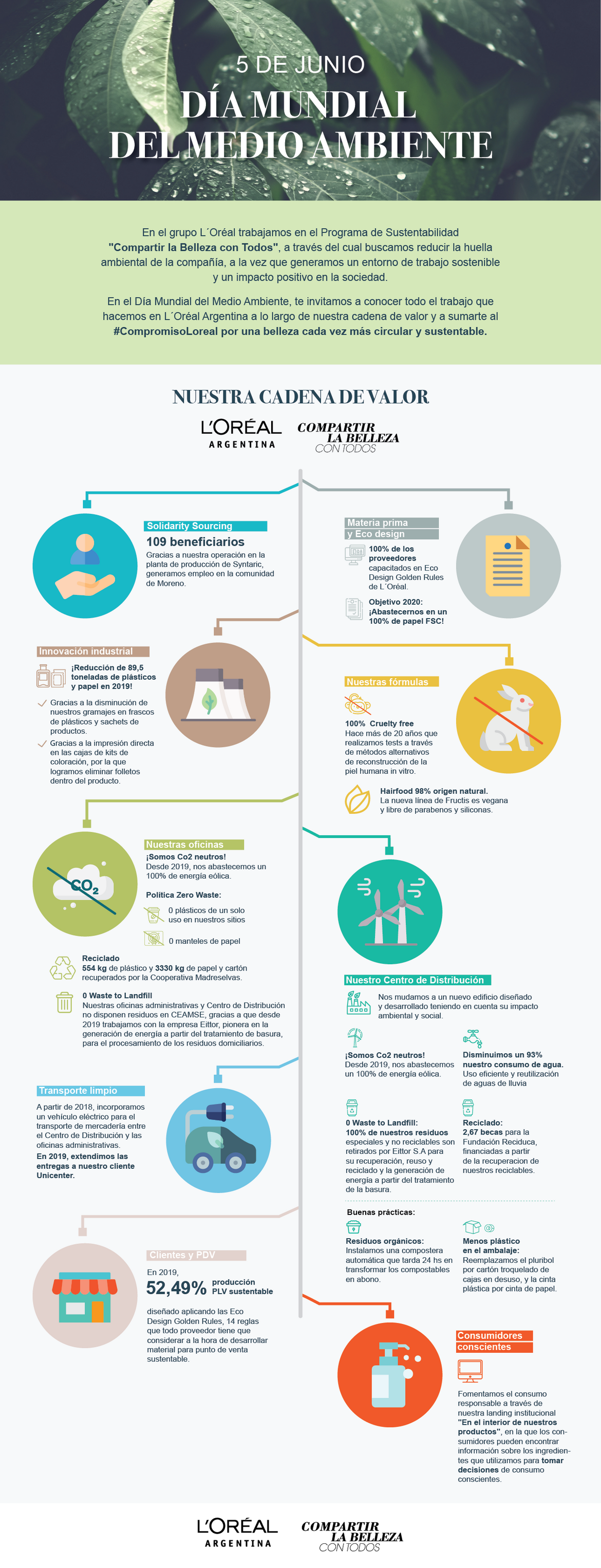 L'Oréal celebra el día del medioambiente no solo con un llamado de conciencia y reflexión para cuidar al único planeta que tenemos, sino también compartiendo las decisiones locales que han tomado y lograron cumplir para reducir la huella ambiental a la vez que generan un entorno de trabajo sostenible y un impacto positivo en la sociedad.