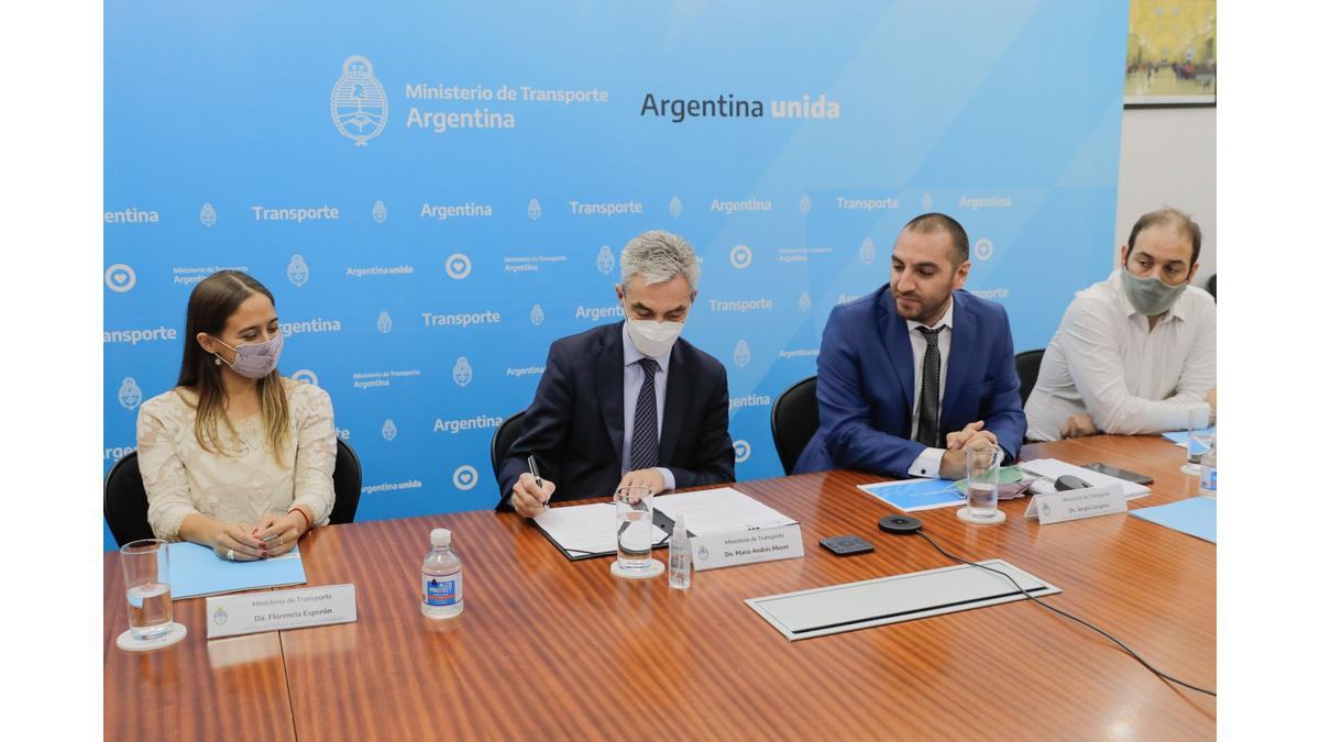 Eliana Banchik, Presidenta de la compañía en Argentina, firmó el convenio de participación junto al Ministro Mario Meoni y otros responsables del ministerio.