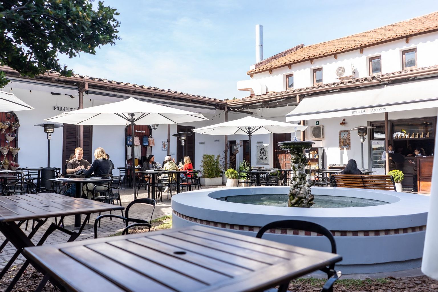 En las galerías y en el mismo patio, cuyo nombre original era Santa Clara, se ubican las mesas y las sillas, en torno a la fuente central. El campanil de la basílica, de 54 metros, el más alto de Sudamérica, le sirve de custodia y se convierte en el mejor escenario para un momento inolvidable.