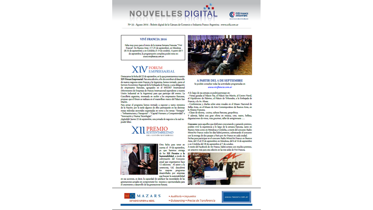 Salió Nouvelles Digital de Junio 2016º, el newsletter de CCI FRANCE ARGENTINE